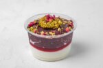 Fragrant rose-infused mahalabya elegantly paired with refreshing açaí.